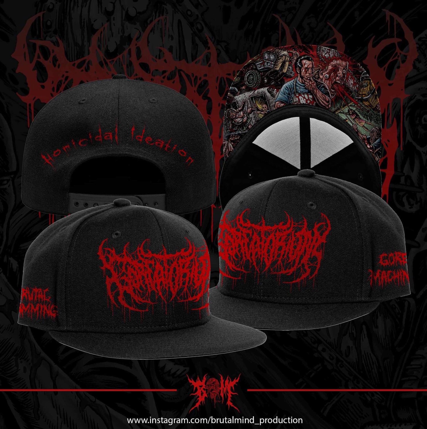 SnapBack with album art under the brim, and stitched logos from Brutal Mind Production.
